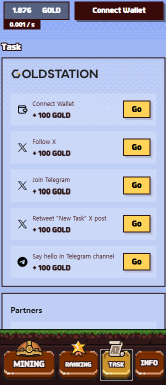 4) 아래 4개 탭 중 'TASK'를 누르고 미션을 수행해도 추가 금을 모을 수 있습니다.